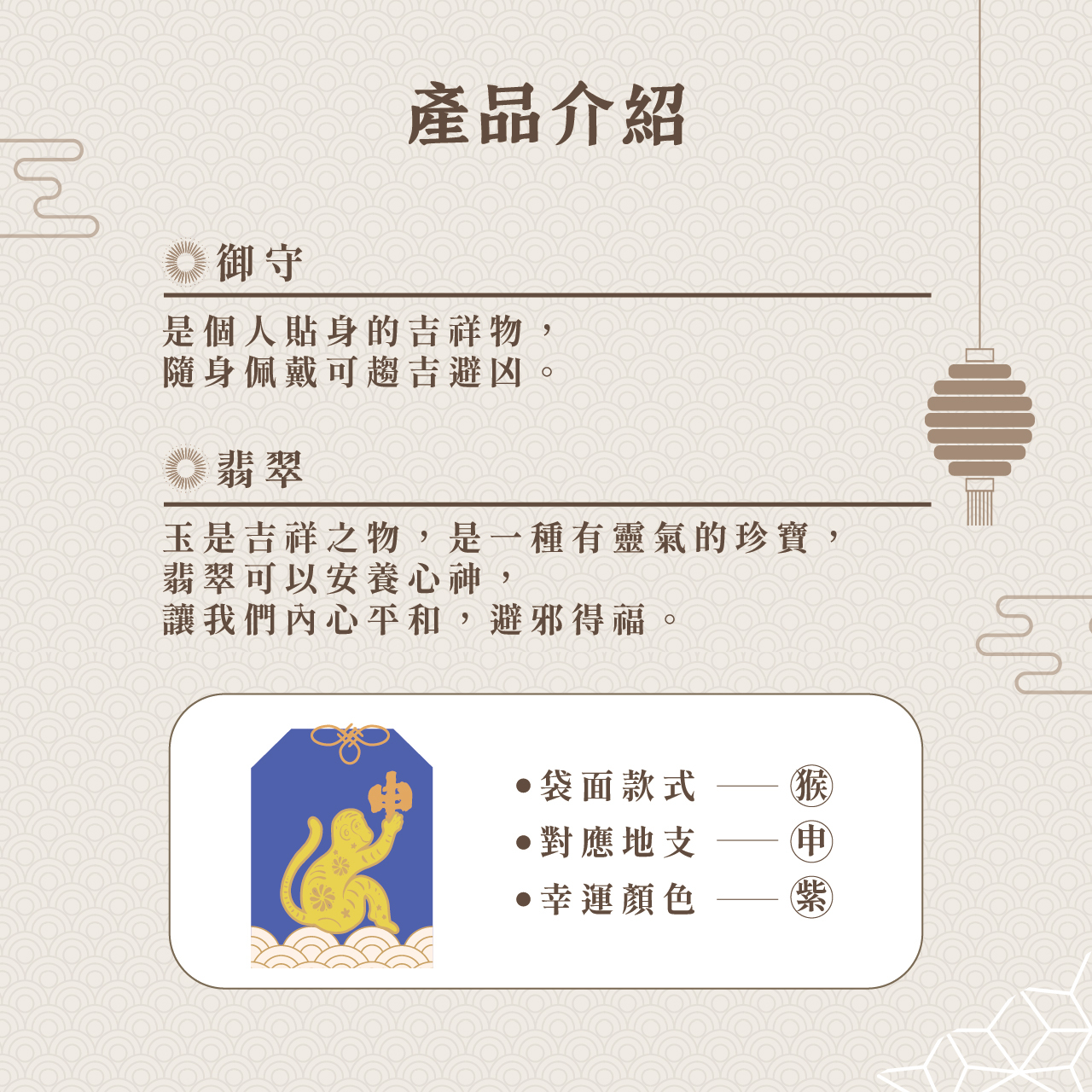 申猴-生肖翡翠護身符項鍊|護身符|祈願|專屬御守|避邪庇佑【鎮瀾宮】