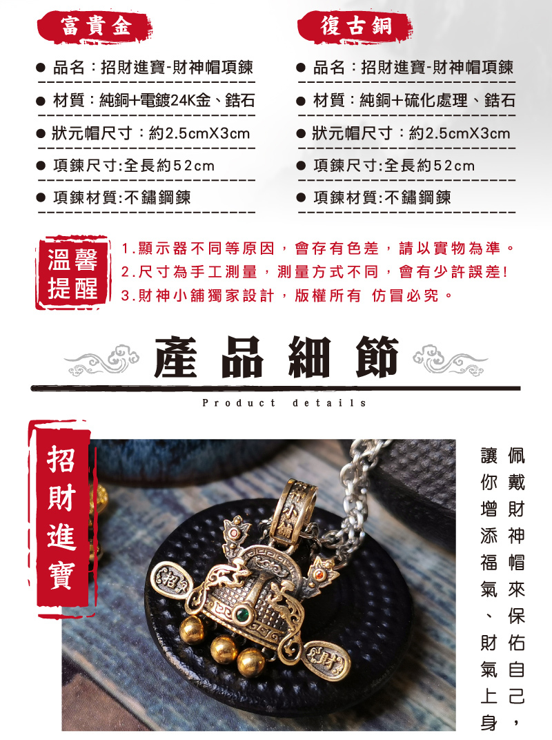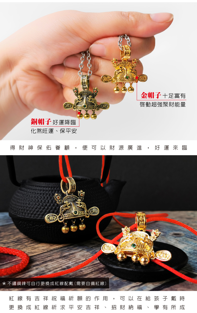 【財神小舖】招財進寶-財神帽項鍊 (含開光)
