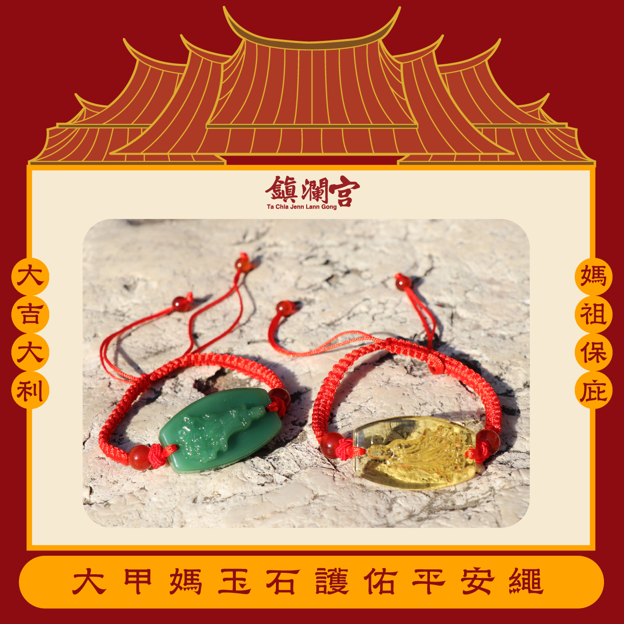 大甲媽玉石護佑平安繩|平安保庇|過爐加持|兩色可選【鎮瀾宮】