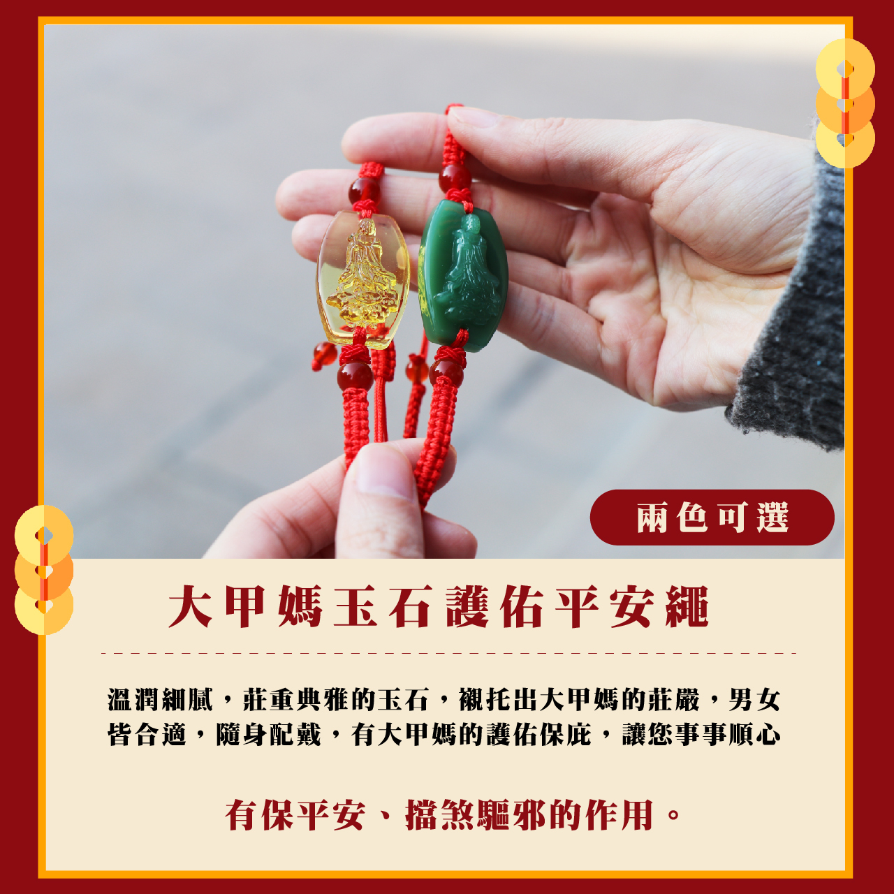 隨身配戴,有大甲媽的護佑保庇,讓您事事順心