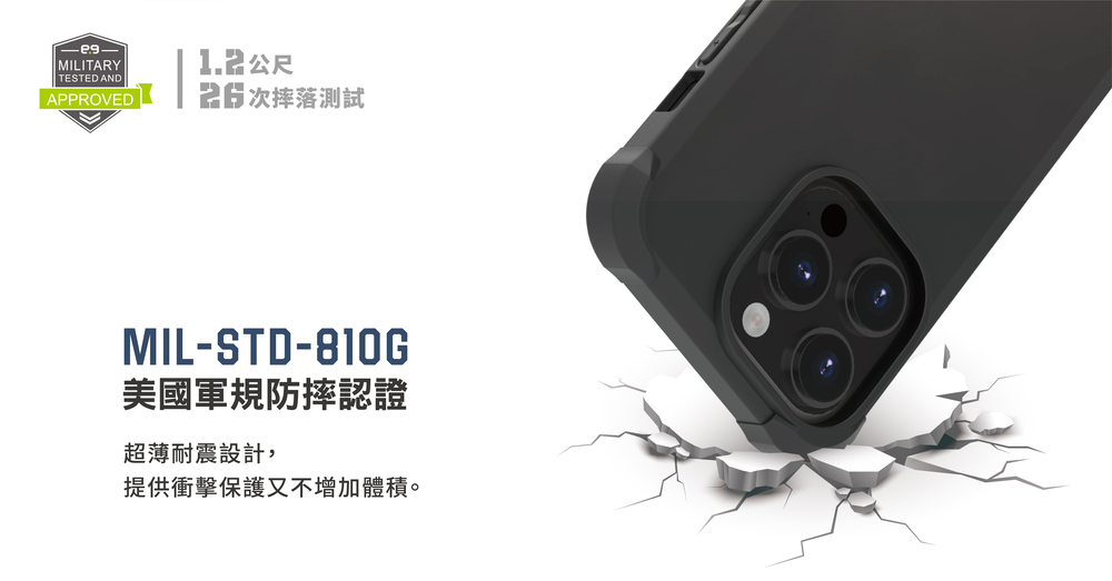 美國軍規1.2公尺摔落測試認證,官方實測達6米防摔,超越軍規標準。