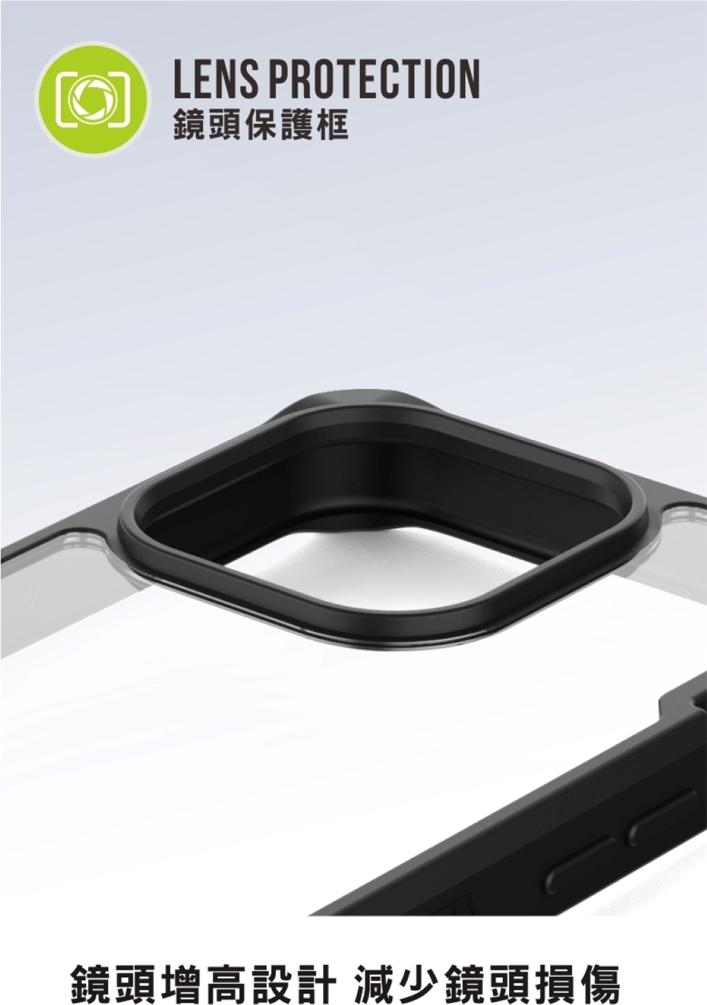 鏡頭保護再進化,鏡頭邊框加高2.2mm,高於鏡頭,高於螢幕。: