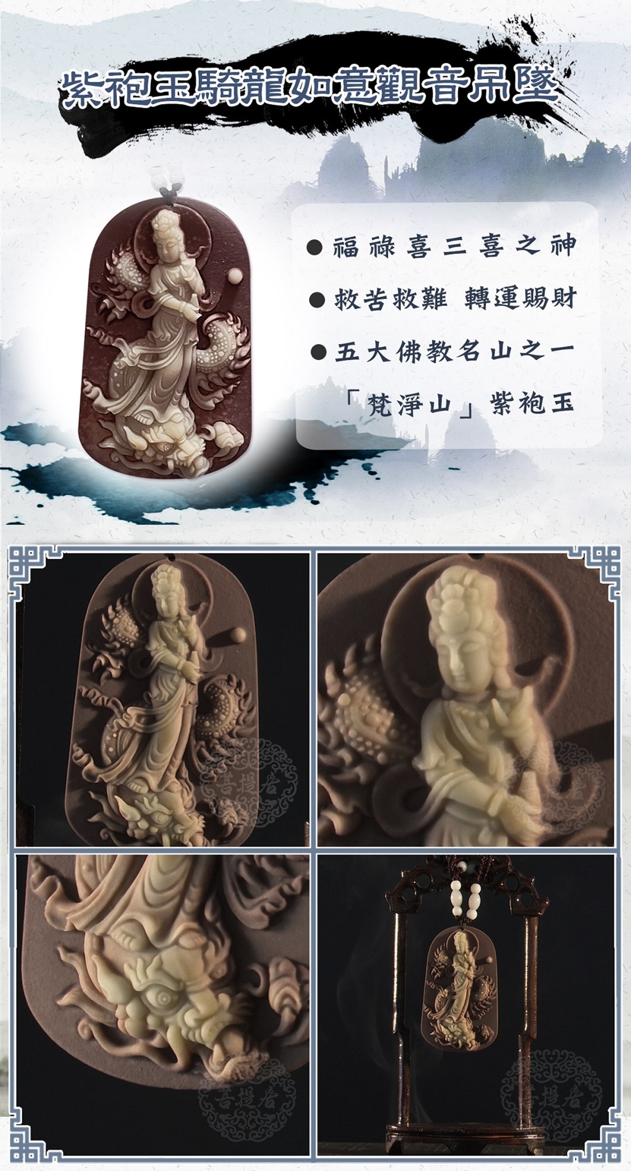 【菩提居】紫袍玉騎龍觀音吊墜 (廠商直出、不參加免運及滿額贈優惠)