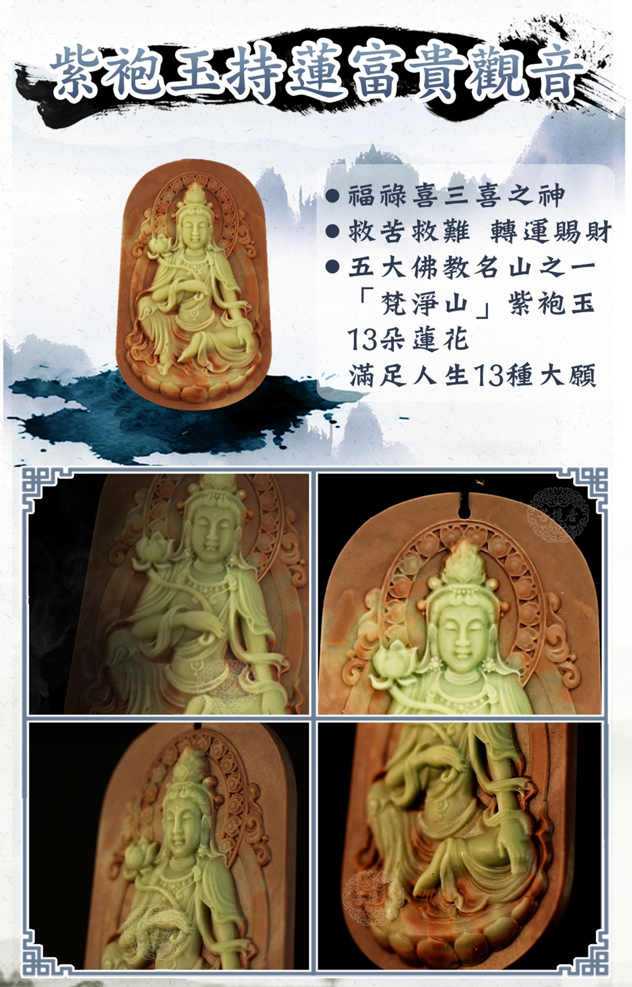【菩提居】紫袍玉持蓮觀音吊墜 (廠商直出、不參加免運及滿額贈優惠)