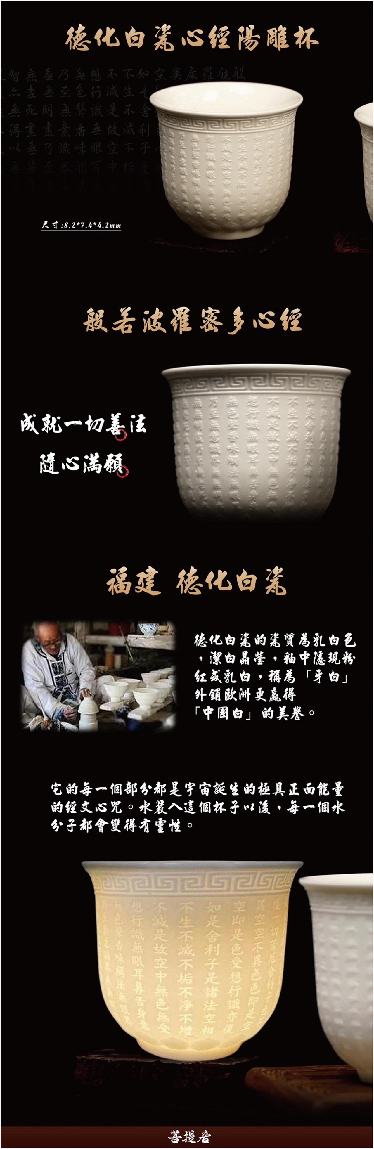 【菩提居】德化白瓷陽雕心經功夫杯(福建德化白瓷)