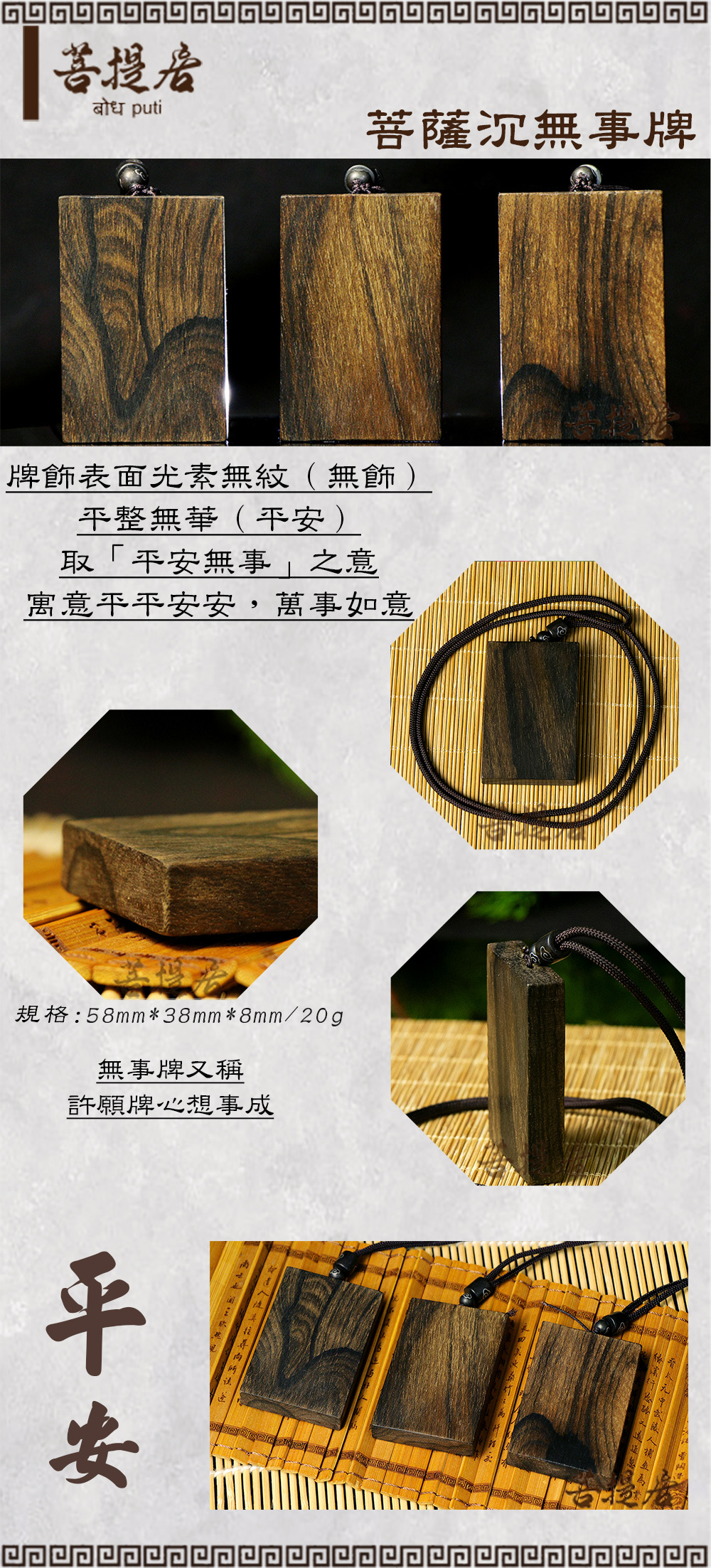 【菩提居】菩薩沉香無事牌項鍊