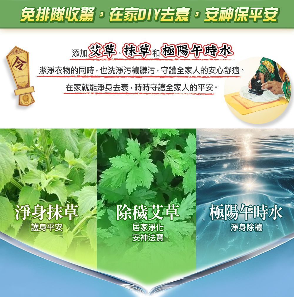 極陽艾草除穢濃縮洗衣精1KG*3+60ml*2+保庇暗符避邪襪(黑色)*2