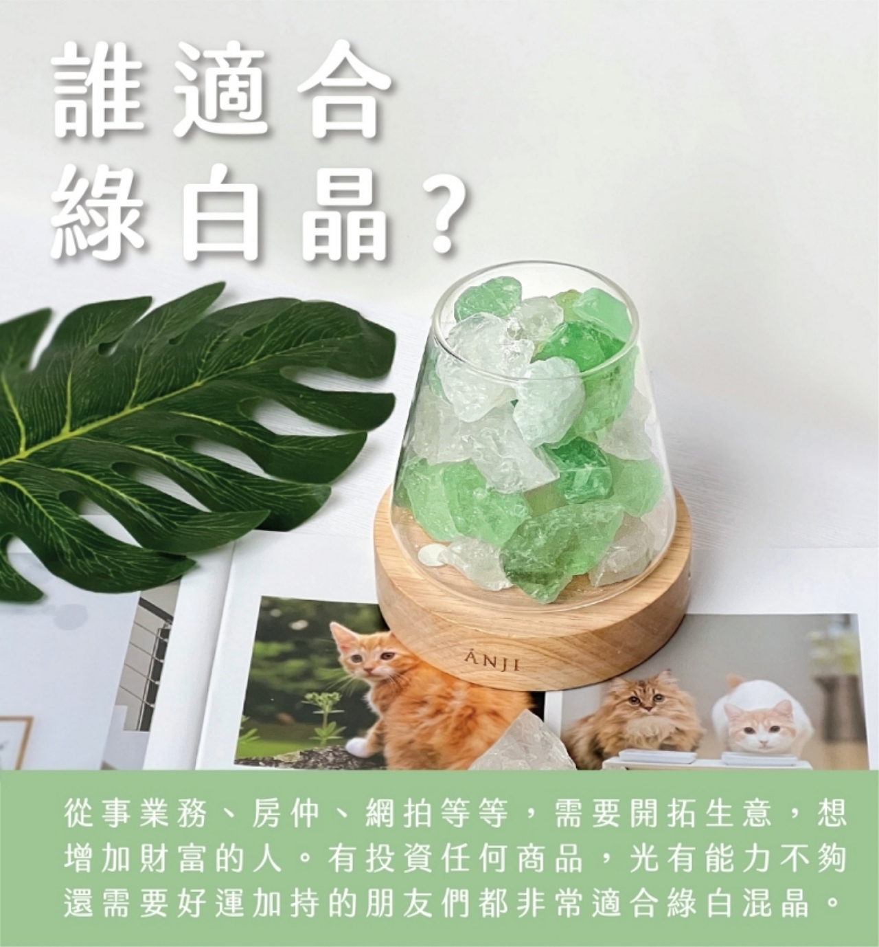 【ANJI】綠白混晶岩燈 檸檬綠 ❘ 財富 X 人際(買就送小蒼蘭精油)