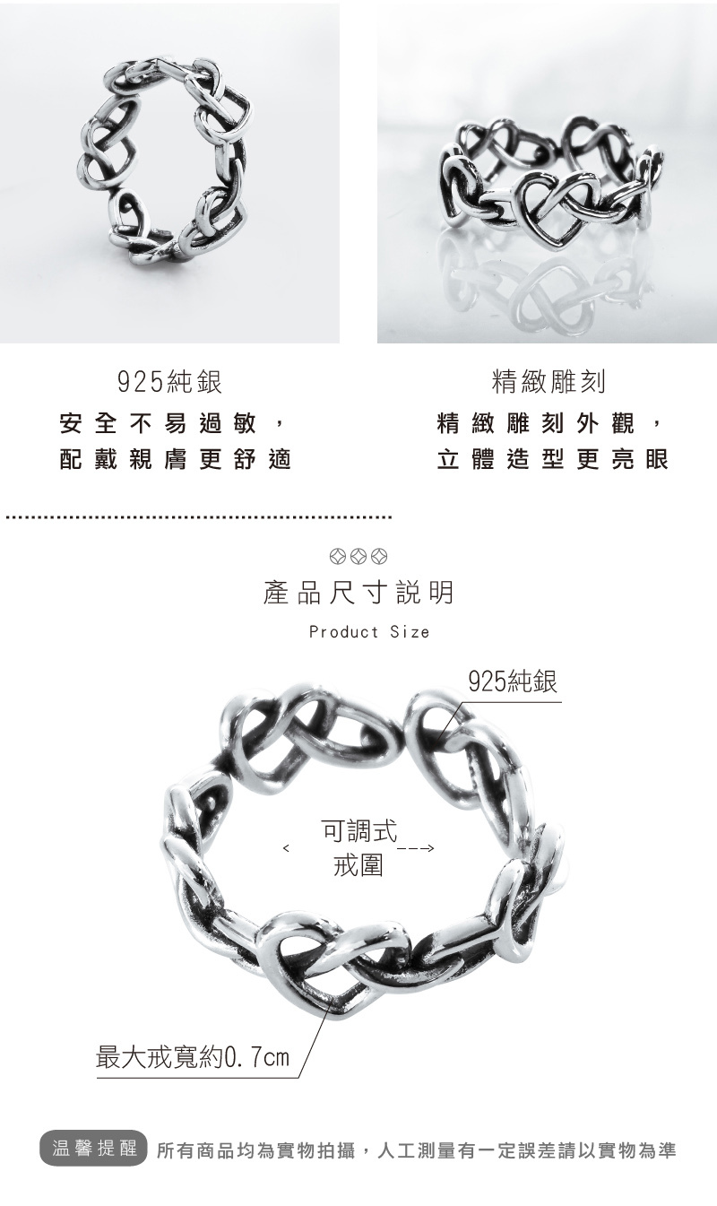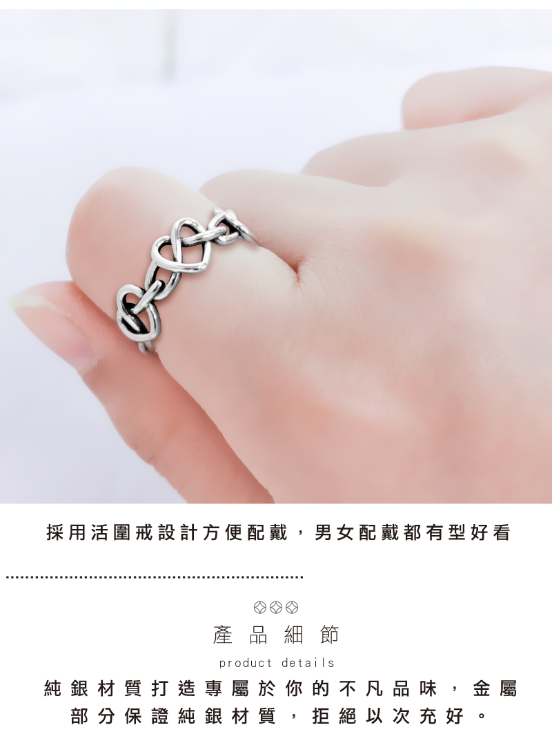 【財神小舖】心心相依戒指(925純銀)活圍戒(含開光)
