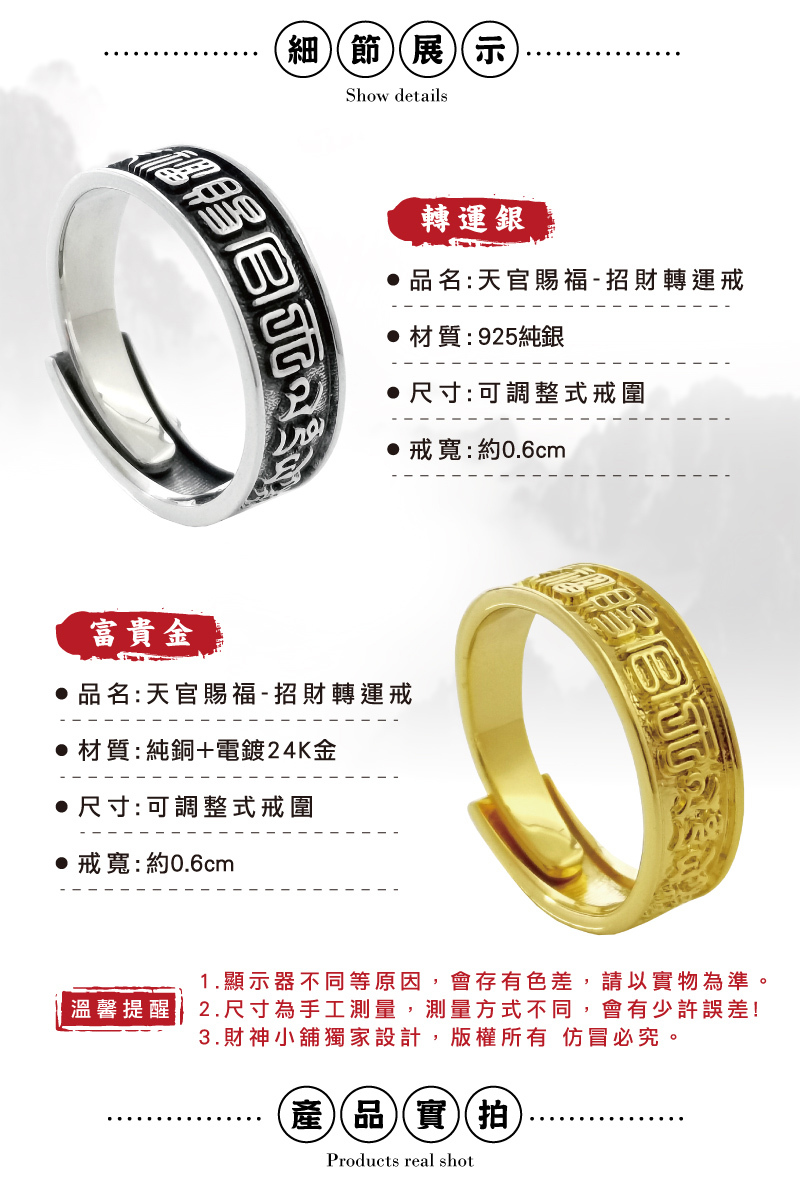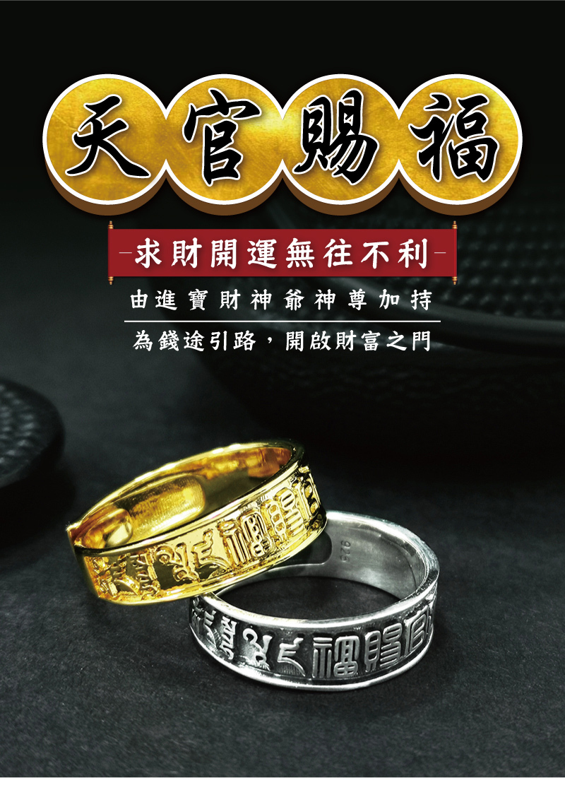 【財神小舖】天官賜福開運戒指 - 富貴金 (活戒圍) (含開光)