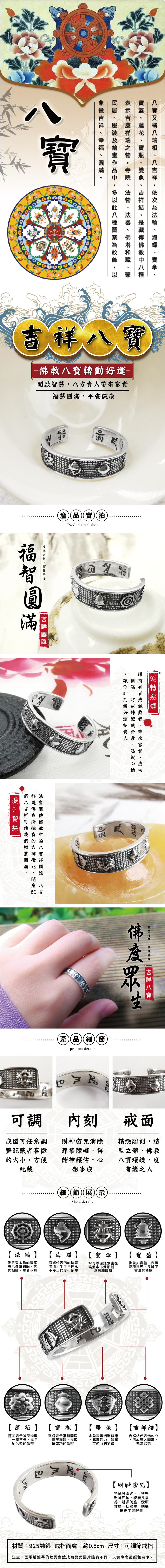 【財神小舖】吉祥八寶戒指(925純銀)活戒圍(含開光)