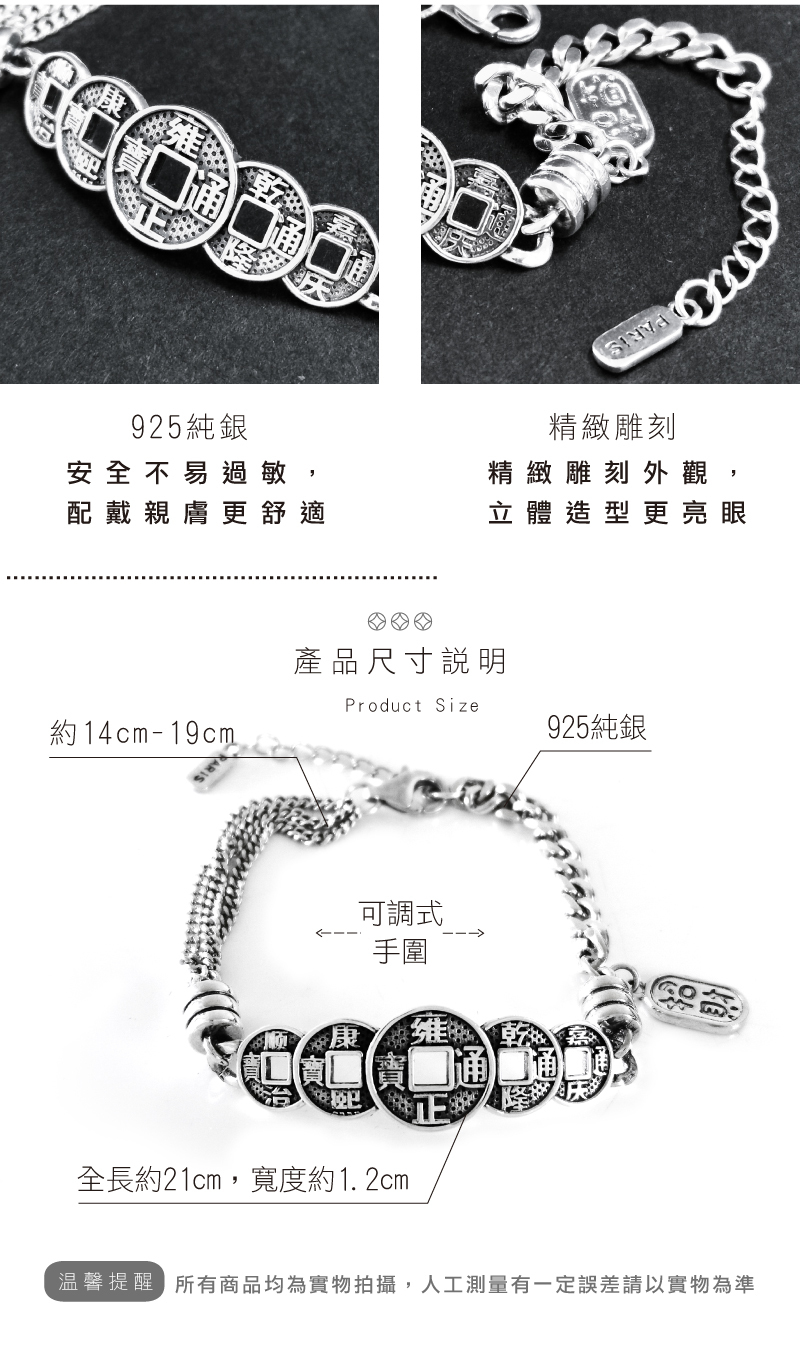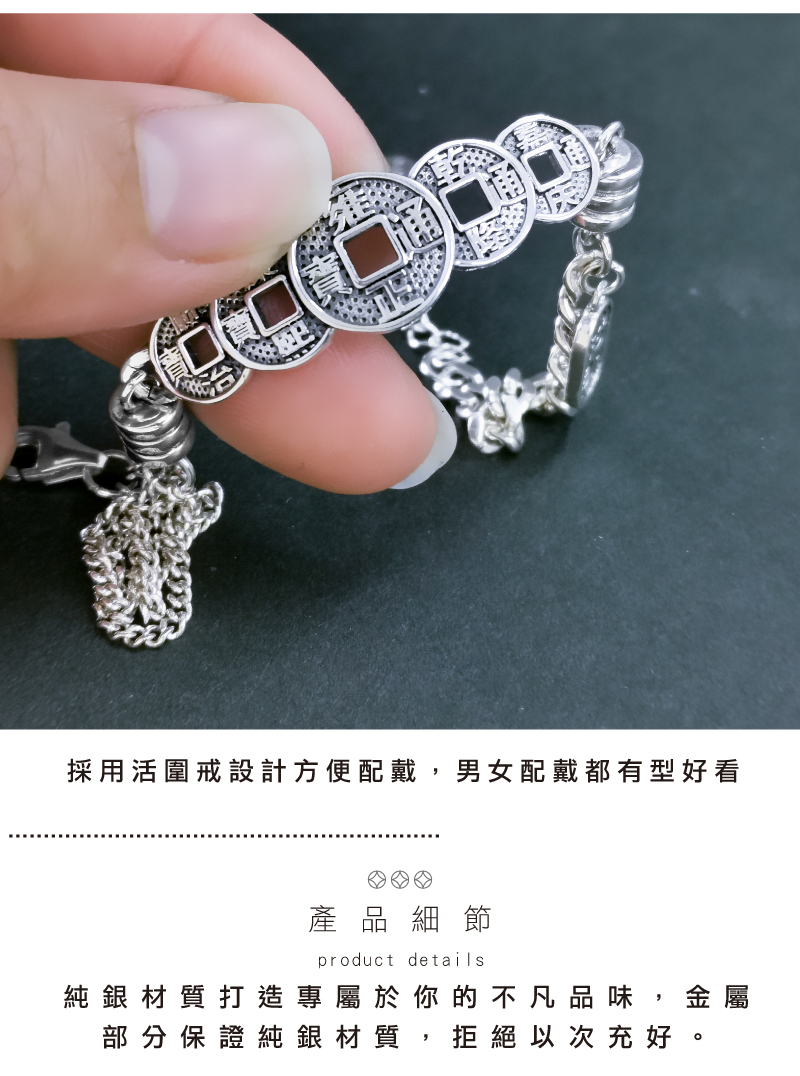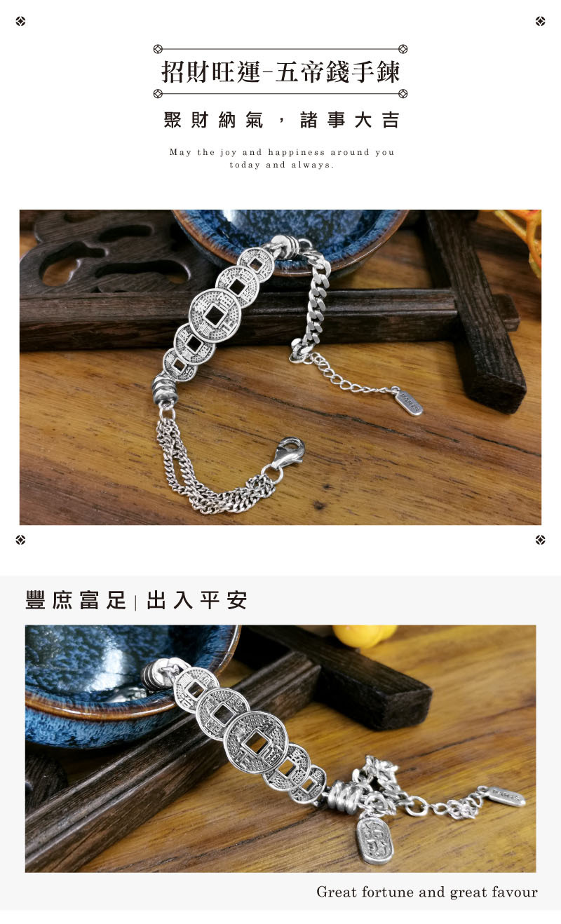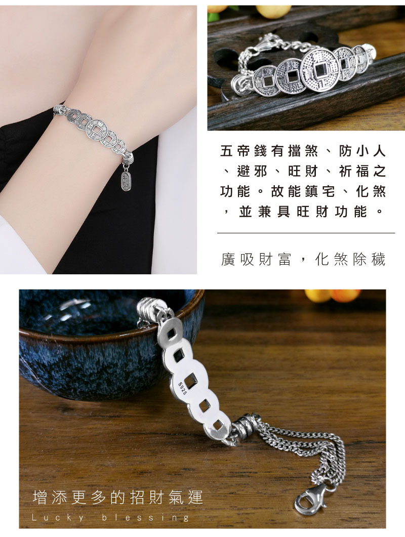 【財神小舖】招財旺運-五帝錢手鍊(925純銀)(含開光)