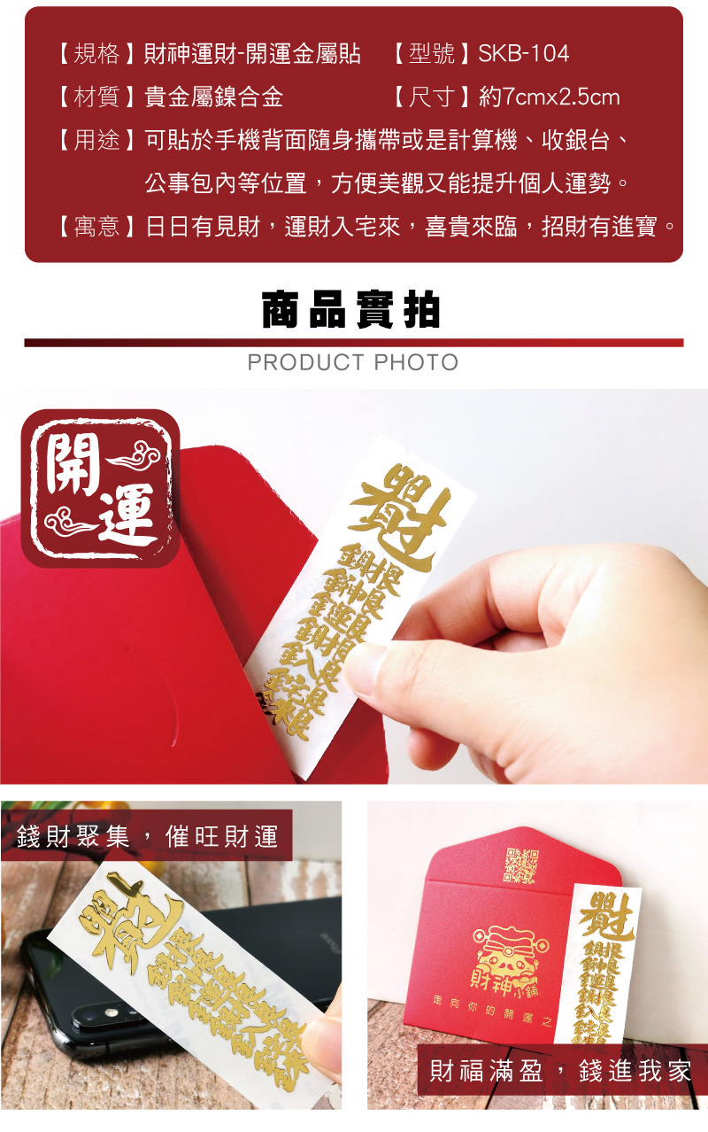 【財神小舖】財神運財-開運金屬貼 (廠商直出、不參加免運及滿額贈優惠)