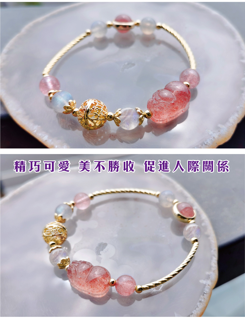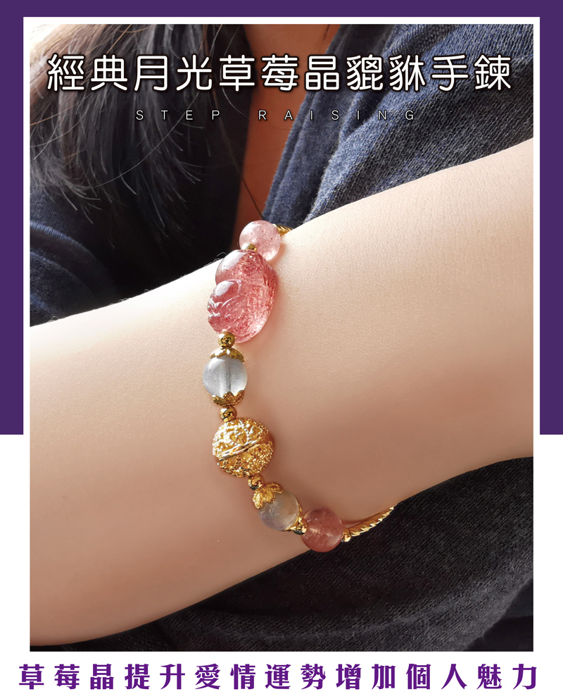 【財神小舖】經典月光 - 草莓晶貔貅手鍊 (含開光)