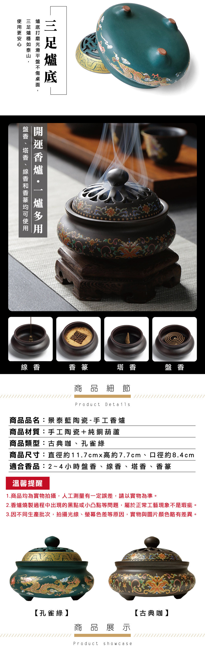 【財神小舖】景泰藍陶瓷 - 手工香爐 (兩款任選) (廠商直出)