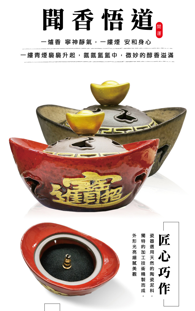 【財神小舖】招財進寶-元寶手工香爐-2款任選