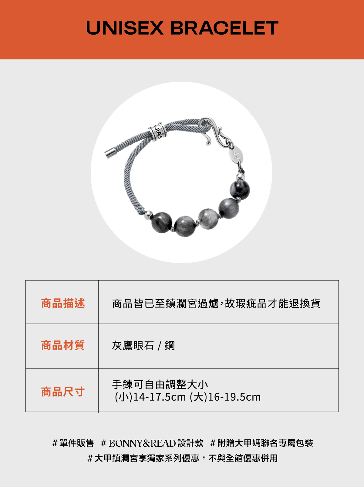 商品材質:灰鷹眼石 / 鋼